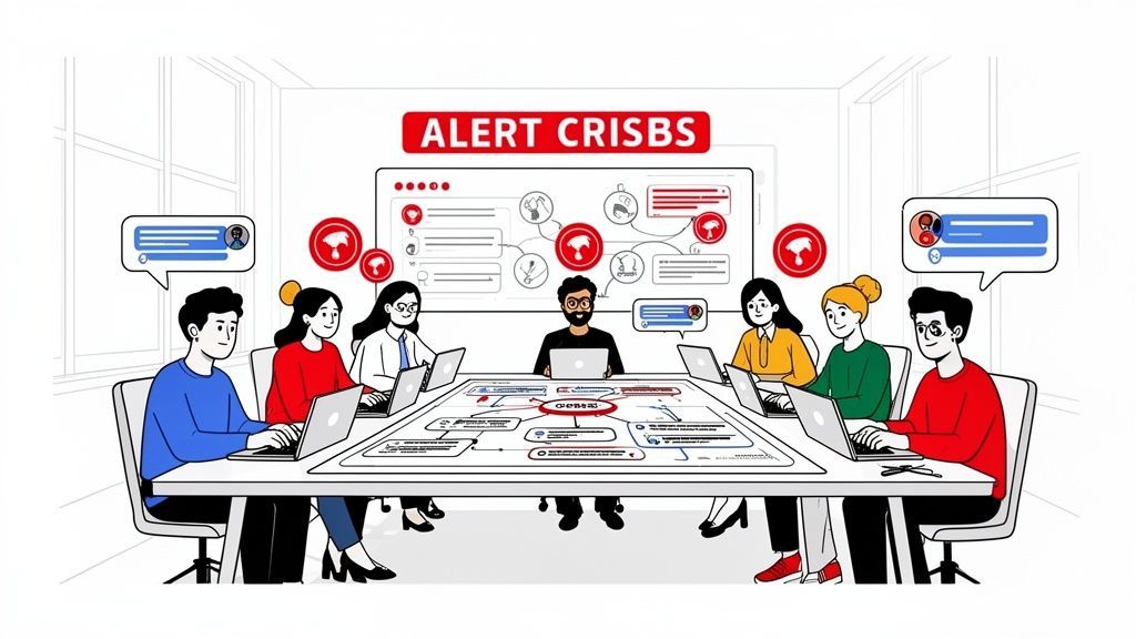 This small group becomes your "war room." It's the single source of truth for the entire incident. Their first task is simple: verification. Is this threat even real? Dig into the initial reports and get to the source of the chatter. If you need a refresher on how to do this effectively, you can learn more about how to track social media mentions and separate signal from noise.