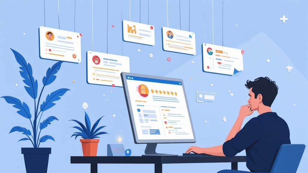 The numbers back this up. Trust in online reviews has hit a critical point, with 85% of consumers trusting them just as much as a personal recommendation. Even more telling, 92% of users will only consider businesses that hold at least a four-star rating. While these stats cover both B2C and B2B, the behavior is universal—people trust other people.