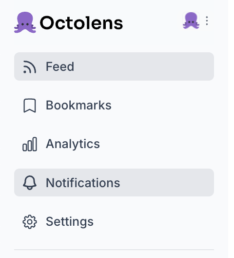 Log in to your Octolens account or sign up for a free trial. Then click on Notifications in the side bar.